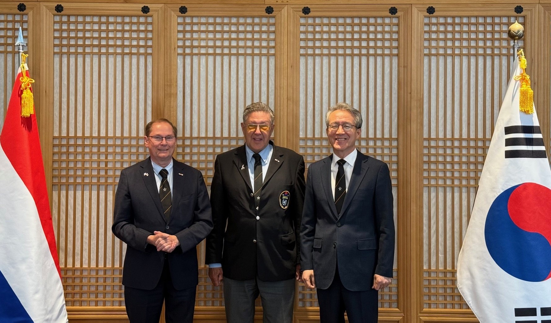 홍석인 대사는 5.30.(금) 네덜란드 한국전 참전용사협회 Paul Gommers 회장과 Leo Schreuders 사무총장(부회장)과 대사관에서 면담하였습니다. 홍 대사는 네덜란드 참전용사들의 헌신과 용기에 깊은 경의를 표하고, 참전용사에 대한 예우와 보훈 활동의 지속적 강화를 위한 다양한 의견을 나누었습니다.